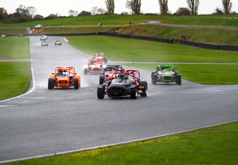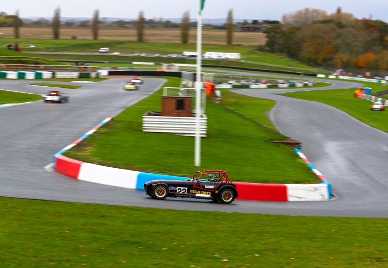 Race 1 was certainly wet, at the start my view of proceedings was just only grey spray and rain against a grey track with a grey car in front of me. Going into Avon rise for the first time, I moved off the racing line, able to see the cars ahead and made my move. Soon took the lead and finished first.